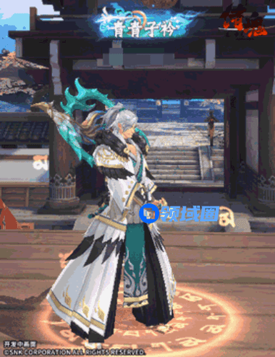 青鸟套里金色纹饰与青色羽毛元素的糅合,让服饰完美将轻灵与华贵两种风格融为一体,加上青色的内衬更是画龙点睛之笔!再配以青白金色系的武器,突出一个美!