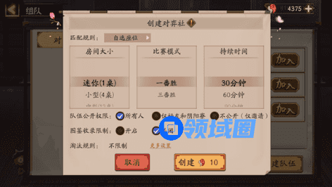 ※创建对弈社时,将根据选择的对弈社规模、持续时间计算创建勾玉消耗。