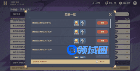 无相交响诗活动总计的奖励是划到了20000分,并且累计挑战积分为当前所有挑战关卡最高纪录积分之和,所以平均一关只要有3000分左右就足够了。