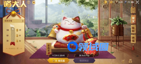 首先进入这个活动,每个人都能免费获得1个【召唤币】,我们直接用这个【召唤币】,在“聚宝”页面聘请1个“喵大人”就行了。你的“喵大人”基础是拥有1000财富值,在“聚宝”页面,我们每存1个【猫元宝】,你的喵大人增加100财富值,每天最多存10次,也就是到达2000财富值。然后在每天的20到24点之间,每100财富值,可领取1个钱袋,钱袋固定开出20服饰币,还有概率开出1个物资币、1个幸运币、1个荣耀勋章。