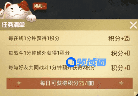 【猫元宝】的获得方式有2种,活动每天最多得4个,然后用200服饰币可以换1个。在左边的任务活动可以看到,当到达30积分、60积分、100积分时,可以共获得4个【猫元宝】。