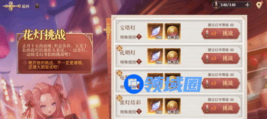 张灯结彩也是今天幻书启世录中新开放的活动挑战关卡之一。