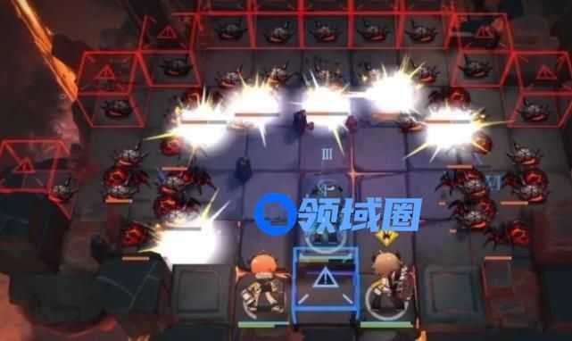 左侧出现兵潮的时候同理,这时候两个群法干员都不要着急开技能,前期平砍即可。