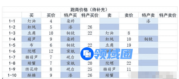 然后再看交易物品的价格,砚台25贝壳,漆26贝壳,因为砚台还不知道哪关卖的最贵,但是漆已经清楚的知道在第一关,而且酥糖在第一关卖的价格也算比较高了,可以卖到14贝壳。
