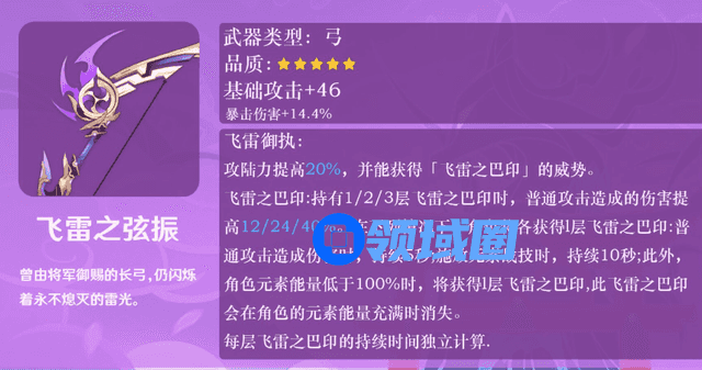 并且特效词条也有略微的不同,从提升元素伤害变成了提升20%攻击力,触发印记的条件一样,但是提升的伤害是普攻造成的伤害提高40%,要知道提高伤害的承区是跟元素伤害加成一样的,数值从28%变成了40%,因此这把弓的属性方面甚至上面的单手剑要更强,且完美符合宵宫的输出方式,当然了,也适合站场流的公子。