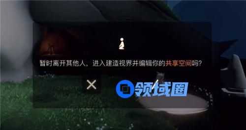 2、来到石像前的空地,就会出现一个光圈,点击那个打坐功能,就会弹出如下窗口提示“展示离开其他人,进入建造视界并编辑你的共享空间吗?”