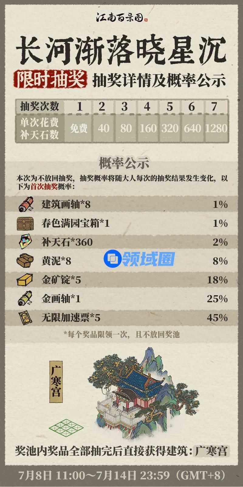 可以得广寒宫*1和春限*1、建筑画轴*8