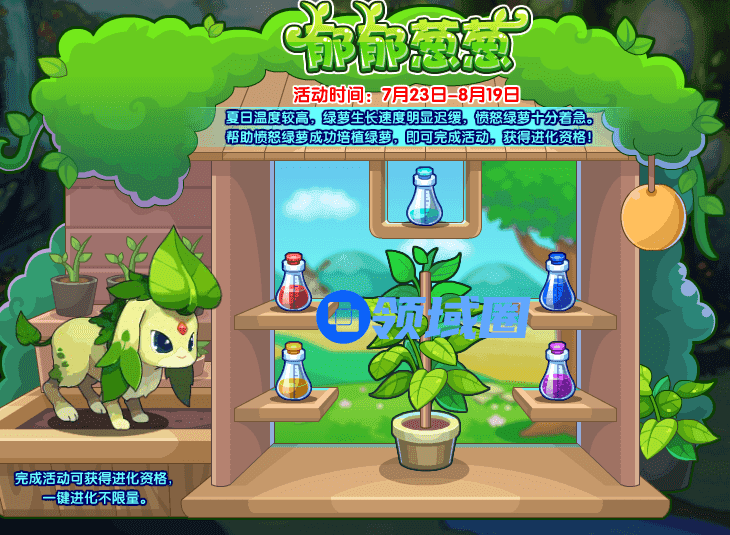夏日温度较高,绿萝生长速度迟缓,愤怒绿萝十分着急。帮助愤怒绿萝成功培植绿萝,即可完成活动获得进化资格!