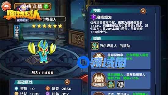 巴尔坦星人,6星法攻型武将,技能魔能爆发(优先攻击敌方中军,伤害为普通伤害的145%,有概率使敌方中军禁锢1回合,减少敌方中军20%防御1回合,回复自己100点士气)。