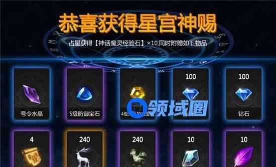 传奇占星需要消耗钻石,可以获得高级魔灵经验石,占星十次必将获得紫色及以上品质道具。