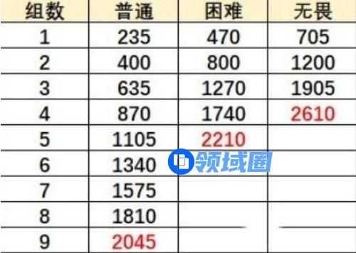 第1组(只刷一次):积分普通235,困难470,无畏705