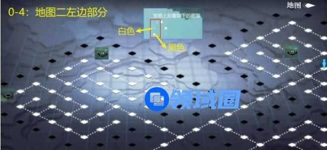 宝箱的提示分为两个部分,和地图的左右部分相对应,白色的点即为猫眼机关,白色的点即为纯黑色的机关。