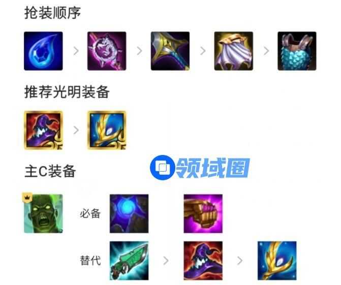 另外肉装我们可以给蕾欧娜,如果有石像鬼石板甲是最好的,有救赎也是不错的选择,另外龙牙反甲也都是不错的装备,如果没有的话,其他肉装也是可以的。