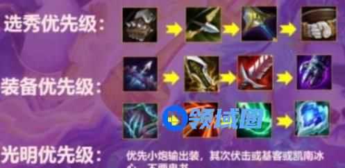 主C小炮:完美神装无尽穿甲弓饮血,里面光明越多越好,可以用光飓风和光正义替代,光羊刀也勉强能用,小炮偏爆发,杀人剑是实在没有了上,里面最重要的是穿甲弓。