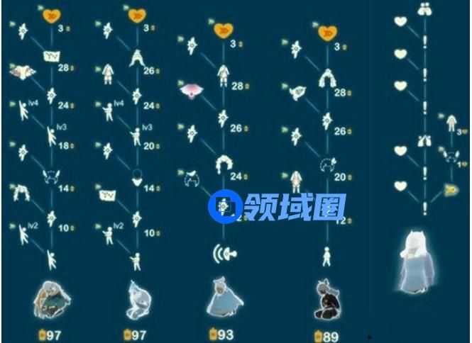 这个季节包含4个先祖,2个斗篷,4条裤子,4个发型,4个头饰,1个乐器,1个站姿,1个叫声,2个动作,还有1个领结。主卡毕业大概需要58天,副卡毕业60天。