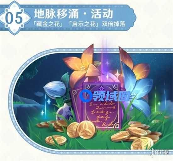 活动期间,成功挑战「地脉衍出·藏金之花」或「地脉衍出·启示之花」领取秘宝奖励时,消耗「原粹树脂」可获得双倍奖励,每天一共可享受3次双倍掉落机会。