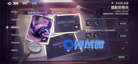 弈士们点击【事件】中心;【活动】;【暗影的奇兵】,就可以看到活动入口啦