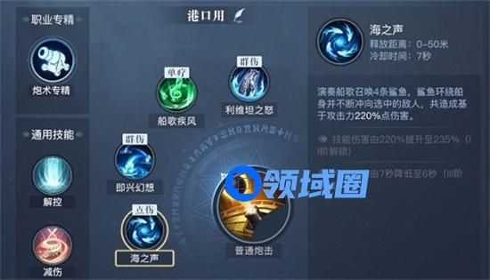 这套技能是建立在团队治疗量足够的基础上使用的,因为“船歌疾风”和“海神恩赐”这两个技能都有同一目标的生效cd,多个奶妈在集中的情况下容易浪费奶量,并且“海神恩赐”的cd太长,实战效果并没有特别好用。可以换成“海神恩赐”来解除团队的异常状态以及增加全队的伤害,在各种多人pvp副本中效果不俗。