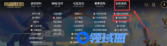 1.首先进入英雄联盟游戏官网并登录,在首页点击“自助系统”,再点击“转区系统”,如下图所示: