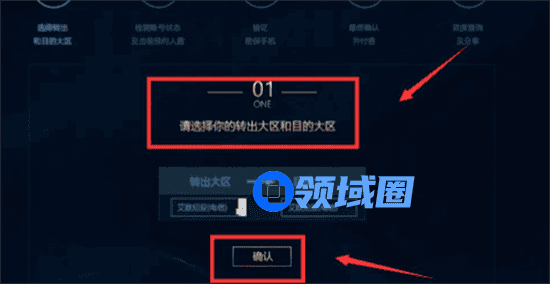 2.进入转区系统后,选择游侠账号的原大区和想要转的目的大区,点击确认,如下图所示: