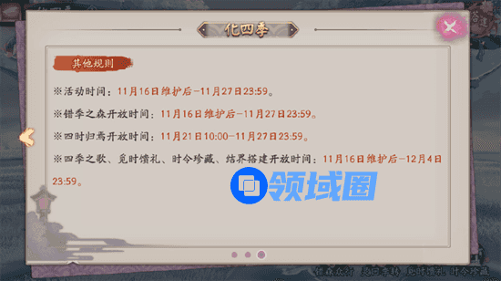四季之歌、觅时馈礼、时令珍藏、结界搭建开放时间: 11月16日维护后-12月4日23:59.