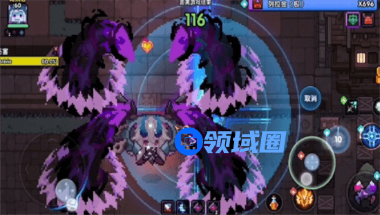 3.上面击退箭第二波还没射完的时候,boss周围会出现红圈提醒,一段时间后伸出大触手,伤害很高容易被秒,但伤害的判定范围很迷,貌似只有被触手握住的三个地方会受到伤害,不过范围内都会被扣篮,看见还是远离比较好: