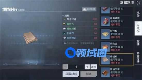 细绒棉籽和细绒棉花是制作细绒布与普通皮革必备的材料,这些半成品则可以制作30—40级的各种装备。这两种资源在西部哨所前面的草原处最多,推荐大家去这里,采集速度最快。