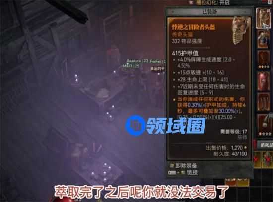 如果在游戏中打到了一件非常好的传奇装备,在萃取之前要想清楚,因为一旦萃取后就无法再交易了。你可以将它直接卖给别人,让别人自己萃取,并将该装备用于自己身上。这也意味着威能是可以被交易的,但传奇装备可能不那么受欢迎。