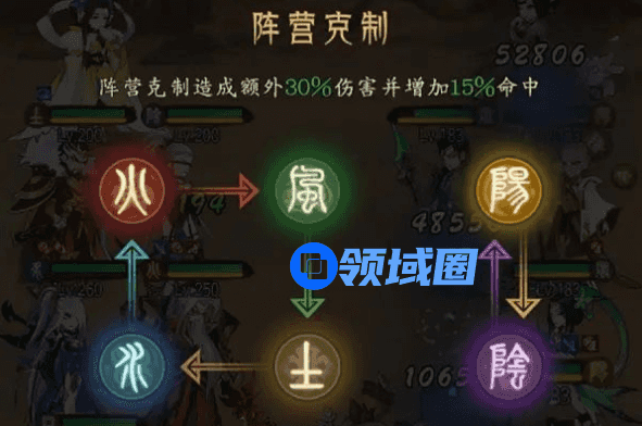 在这款国风手游中,阵营划分为了风、土、水、火这四个常规属性以及阴和阳这两大特殊的属性。