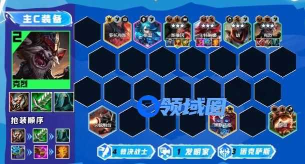 2、阵容羁绊:4裁决战士3诺克萨斯1发明家