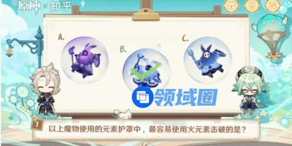 1、以上魔物使用的元素护罩中,最容易使用火元素击破的是?【B】