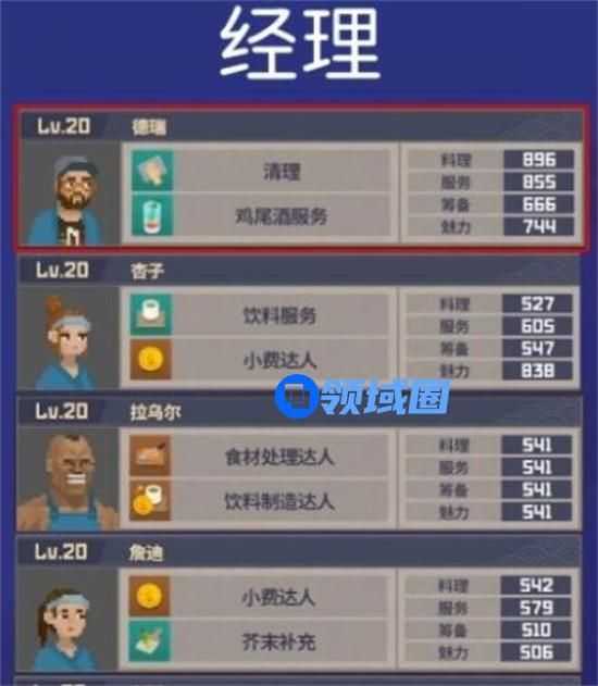 德瑞可以帮助玩家快速的清理餐厅的垃圾并且拥有鸡尾酒服务,为用户带来很好的享受感。
