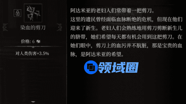 背景:阿达米亚的老妇人们常带着一把剪刀。这里的遗民曾经面临血脉断绝的危机,但现在他们迎来了新生。妇人们会熟练地用剪刀剪断新生儿的脐带,她们希望每天都有机会用到这把剪刀。在她们眼中,剪刀上的血污并不肮脏,那是宝贵的血脉,是阿达米亚的希望。