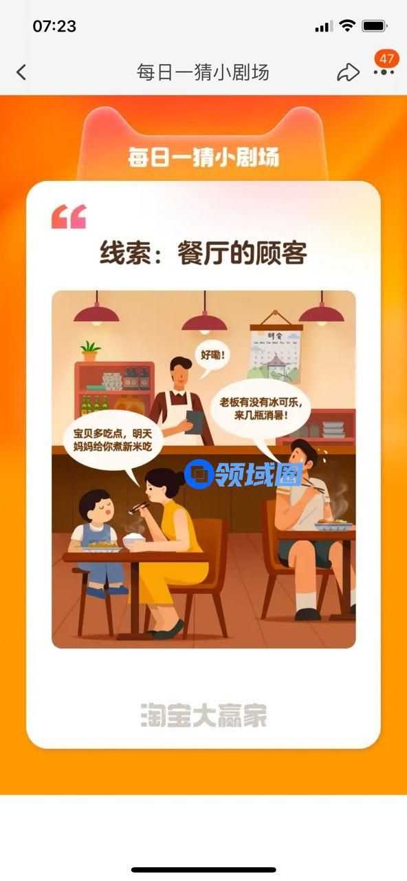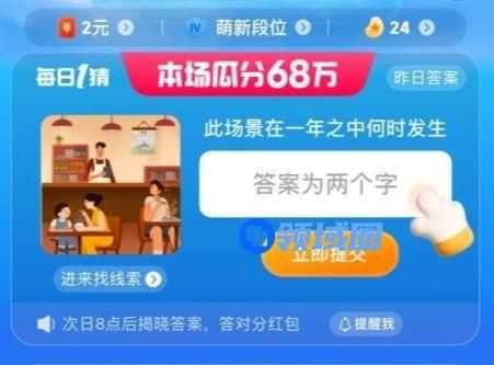 淘宝每日一猜7月7日题目更新了啥,此场景在一年之中何时发生是今日的题目,这道题目很多玩家都不是很了解的,答案是2个字,下面就来介绍下淘宝每日一猜7月7日答案是什么。