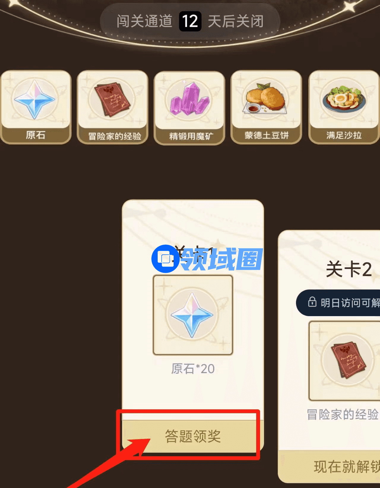 2、今天是活动的第一天,所以可以直接进入关卡1答题。