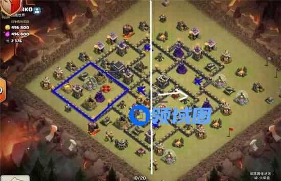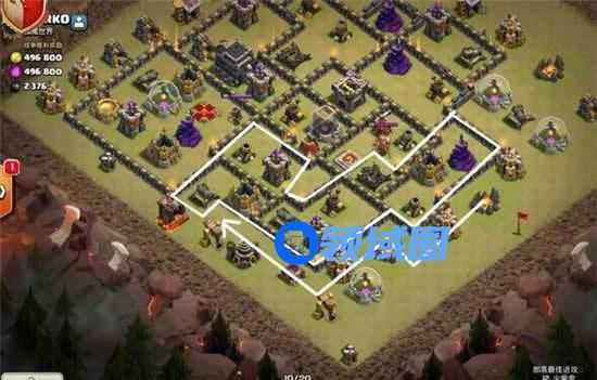 如图所示这是一个《部落冲突》典型的女王偏置·防空偏置的九本不规则阵,相信大家都遇到过甚至正在用