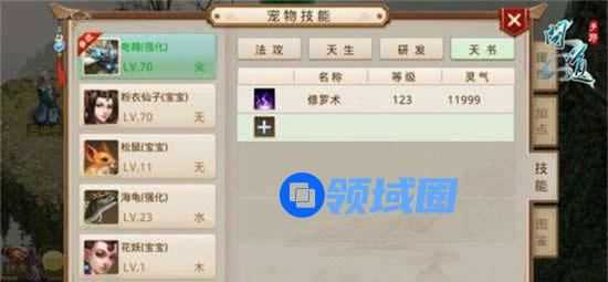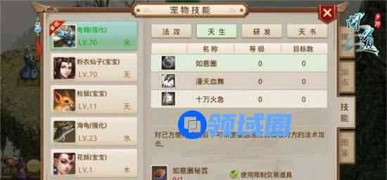 通过天书获得的技能。宠物获得天书技能后,在战斗中有一定几率触发。天书技能有灵气,战斗中触发天书技能后,天书的灵气会减低,可通过其它天书补充灵气。