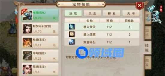 《问道》手游的宠物的技能分为法攻技能、天生技能、研发技能和天书技能四种。
