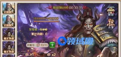 最最有挑战的就是魔王来袭了,因为仅凭一人之力是很难成功弄死魔王的,这个时候就是考验你人缘的时候了,点击分享给好友,让好友来帮你一起打,BOSS死后大家一起来分赃~~击杀BOSS可以获得相关的功勋积分,在商店里兑换相关道具,是不是很赞呢?