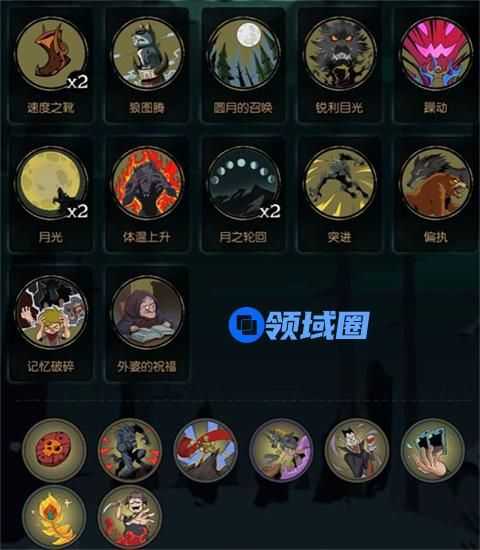 核心:月光(2-3张),体温上升,月轮(2-3张),偏执,可选(狼图腾,突进,鞋子,兽性激发祝福,锐利目光)
