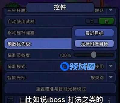 3、按键吧移动与瞄准按钮扩大,能够够方便玩家进行操作,留下了放大/缩小视距方便玩家查探,还有快速喝药的按钮,最后在放置智能光标按钮以及锁定按钮,能够帮助你快速的上手击打boss。