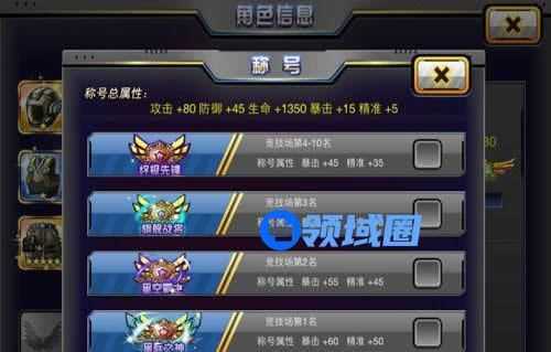【竞技场排名称号】:PK强者的象征,竞技场排名可是玩家间实力的判断。