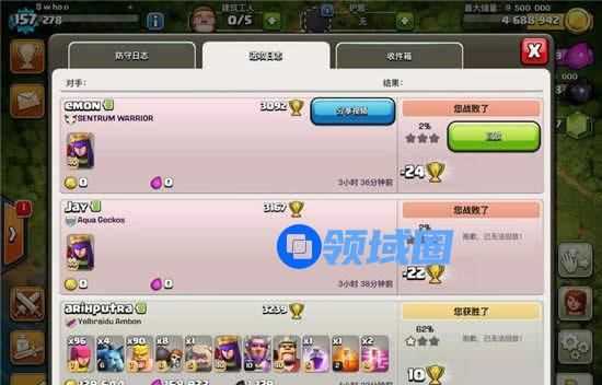 以上是领域圈小编为您整理提供的游戏攻略,希望这个攻略对您有所帮助,请时常关注领域圈《部落冲突》专区,领域圈将为您提供最新的攻略。