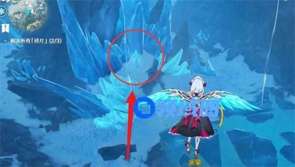 1、来到覆雪之路,调查奇怪的冰。(需要使用周围的4个深赤之石打破坚冰,解锁忍冬之树)