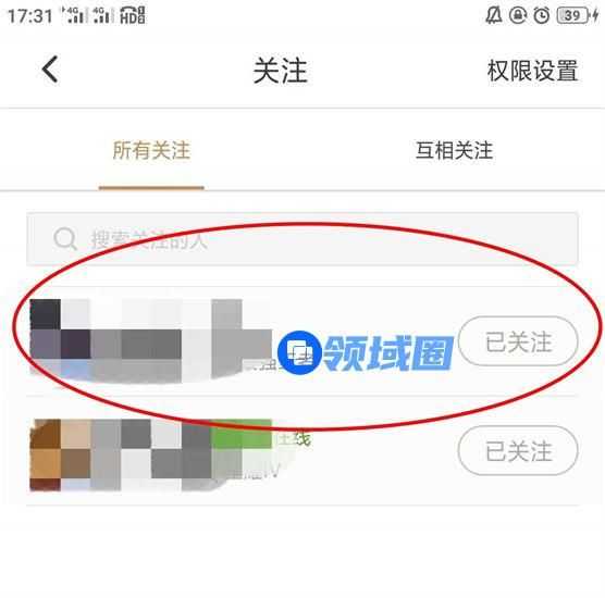 2、在关注页面选择想要删除访问记录的好友,进入好友主页。
