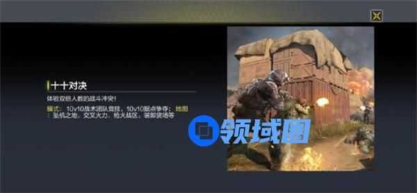 目前,10v10模式中开放了战术团队竞技模式和据点争夺模式。开放的地图共有4张大型地图、2张小型地图。