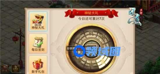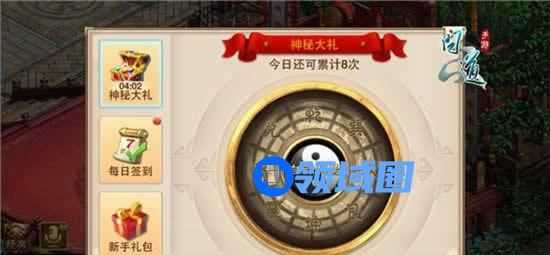 如上图所示,当有大礼可以领取的时候,中间阴阳鱼就会泛起蓝光,上面的文字描述会显示当前可抽奖次数。当前可抽取奖励领取完毕后,文字提示又会变成今日可累计次数,如下图所示。