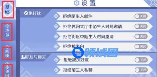 4.点击进入设置按钮,点击后我们就能看到基础设置,声音设置,画面设置,快速回复等设置都在里面。