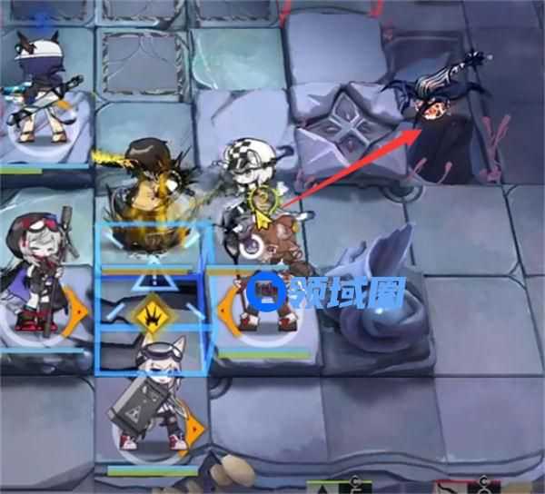 如图所示位置部署重装(或者挡3近卫),然后下两个奶妈准备放水陈。