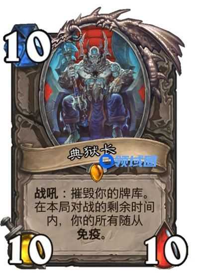 典狱长,10费10/10身材,战吼:摧毁你的牌库,本局剩余时间内,你的所有随从获得免疫。